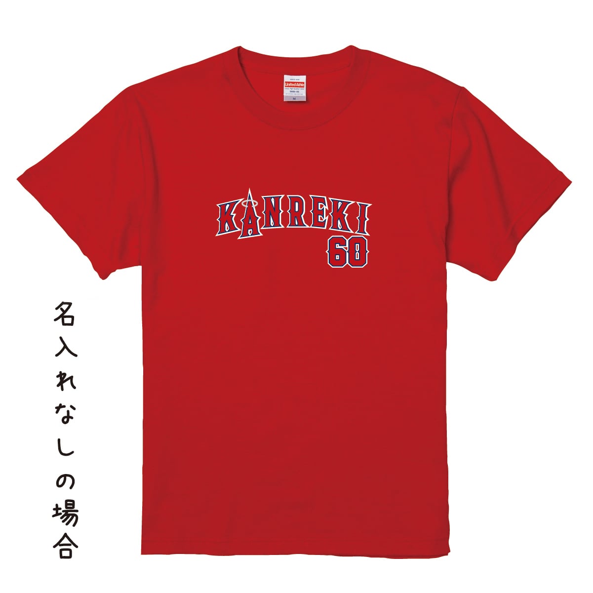 還暦のプレゼントにお名前をプリントした世界で1枚の大リーグユニフォーム風還暦Tシャツ