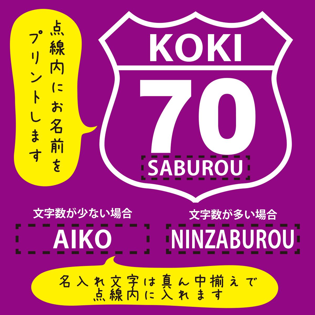 懐かしい「ルート66」の道路標識風のデザインで古希をお祝いします。